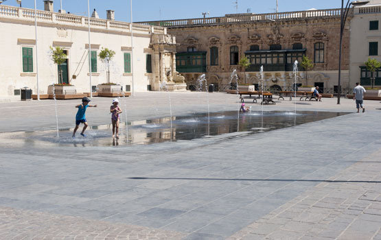 Například na pěší zóně, která není v horkém počasí zastíněna, má smysl alespoň trochu zavlažovat. Městská zvířata, jako jsou psi a kočky, také potřebují vodu. Je jasné, že domácí mazlíčci mají vodu doma, ale měli by k ní mít neustálý přístup i na ulici: agresivitu zmírňuje především voda. Na hřištích by měla být voda, pro děti je to psychická úleva. Suché fontány jsou levné.